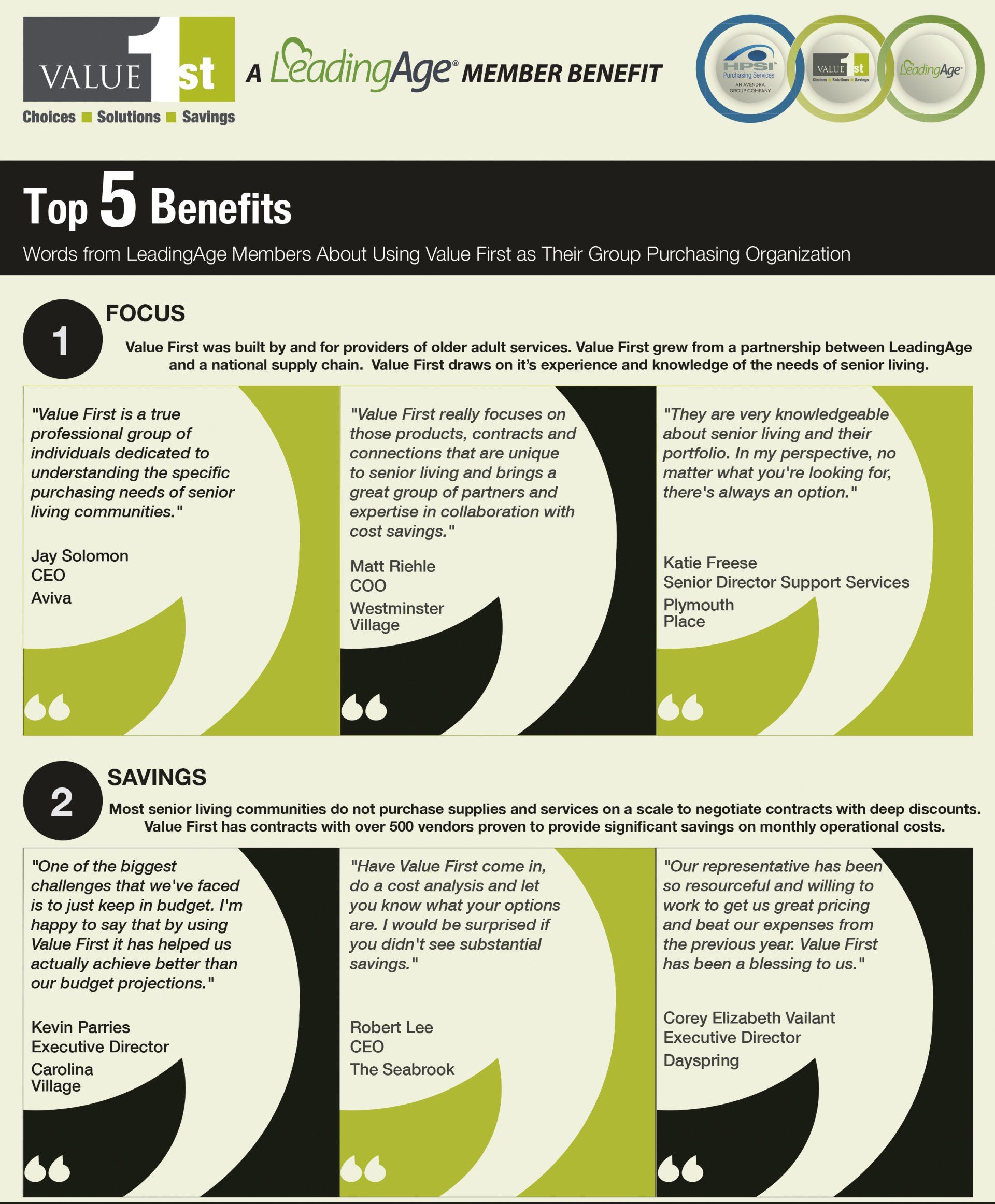 Value First is focused on the needs of senior living communities by providing choices,