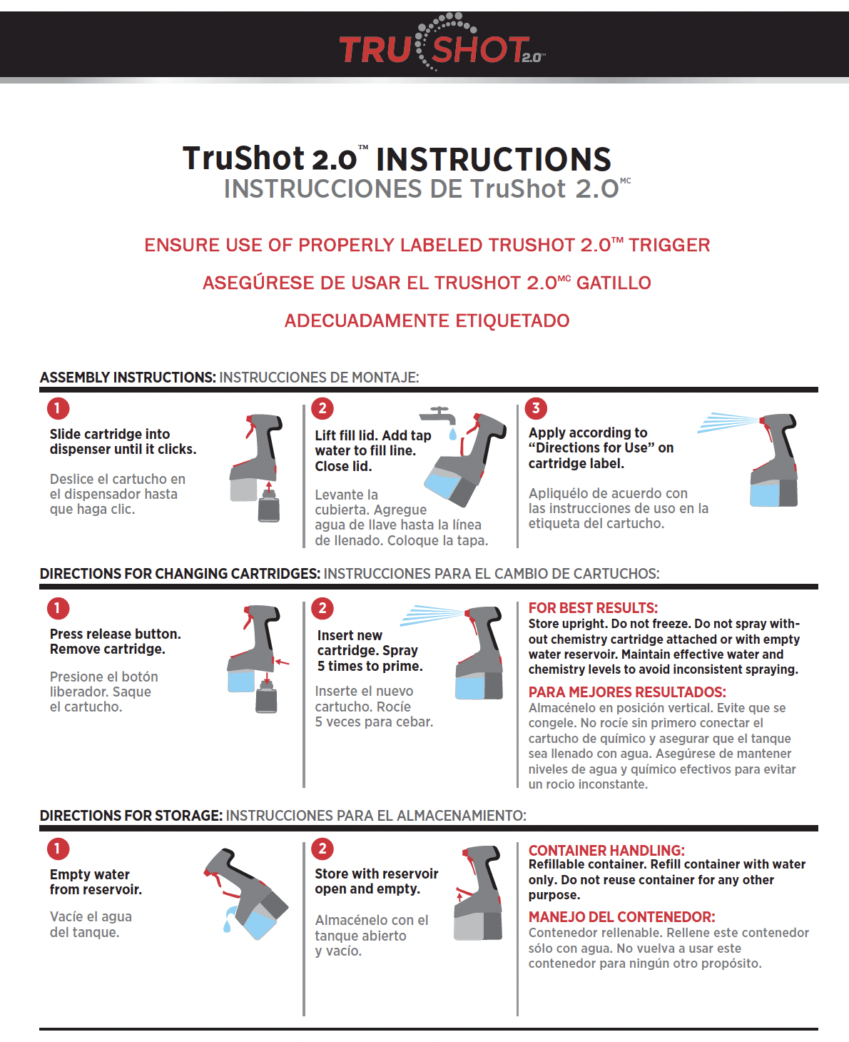 TruShot® CHEMISTRY CARTRIDGES TruShot 2.0® Cartridges require no user mixing. The color-coded and easy-to-read cartridges simplify compliance, reduce off-label usage, and deliver the comparable clean of up to 43 in-use quarts.
